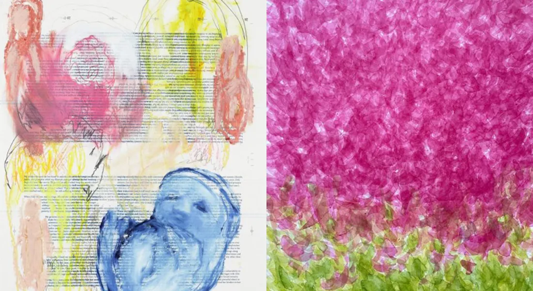 Schellenberger ließ sich für die Serie »Documentas« auf Vorgegebenes ein, indem sie Fehldrucke von Buchseiten, die ein Künstler bei der letzten Dokumenta aussortierte, als Bildträger ihrer Fingerzeichnungen nutzte. Die Ölfarbe trug sie ohne weitere Vorzeichnung auf das bedruckte Papier auf, wobei ihre transluzid farbige Figuren mit dem vorhandenen Satzspiegel korrespondieren und dem Untergrund Raum gewähren.